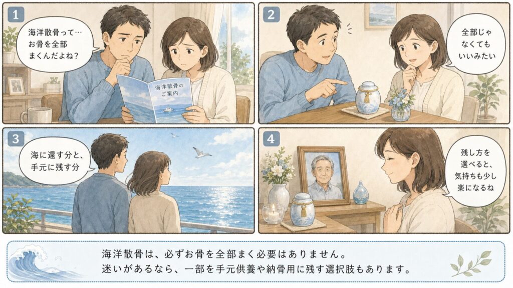 海洋散骨は「全部を海へまくか、まかないか」の二択ではありません。