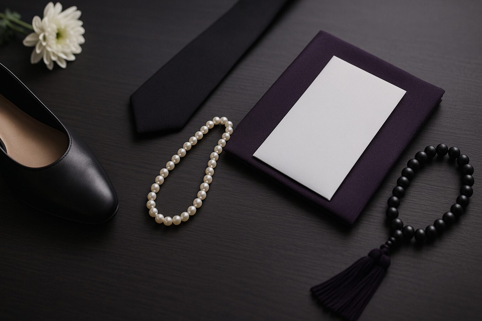 - 原則:葬儀・告別式=準喪服(黒無地)、通夜=準喪服 or ダークスーツ。
